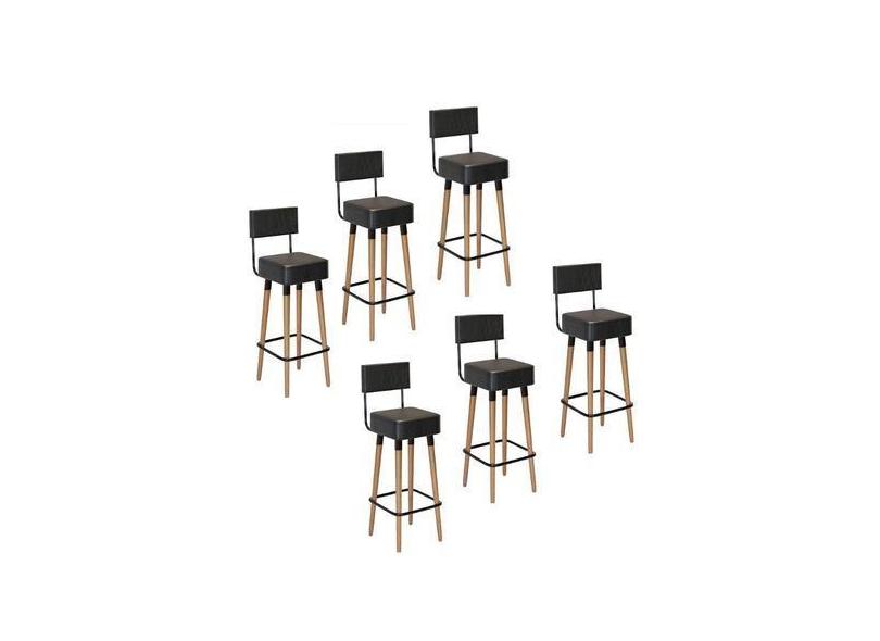 Kit 6 Banquetas Altas Estofadas Florença Preta - Adz