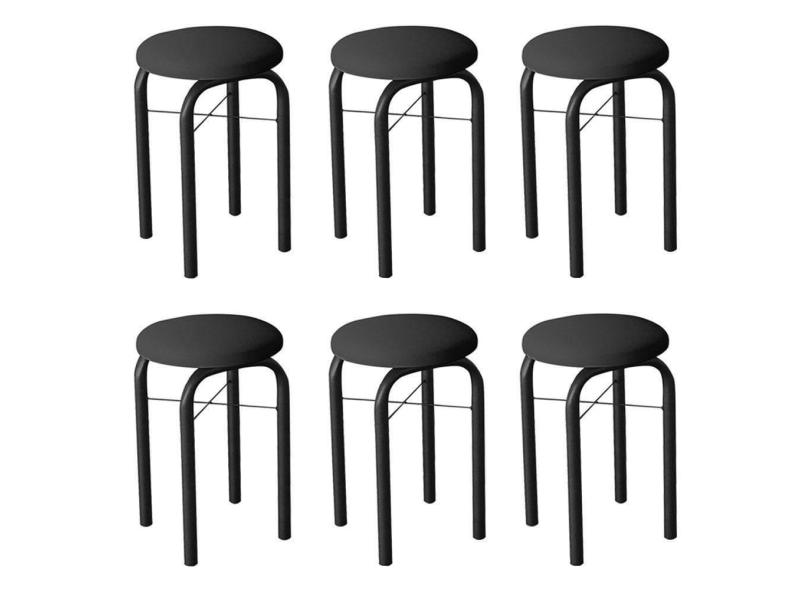 Kit 6 Banquetas Baixas Para Cozinha Em Aço Manu Sintético I01 Preto - Mpozenato