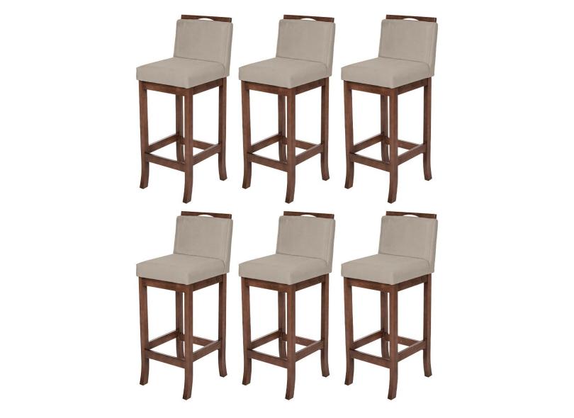 Kit 6 Banquetas Bancada Cozinha Turim Madeira Capuccino Suede Bege CCS