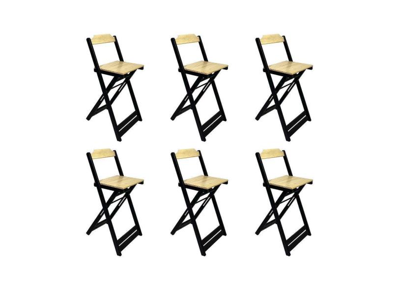 Kit 6 Banquetas Bistro Soberana Bar Em Madeira Padrão - Natural/Preto - Marrom
