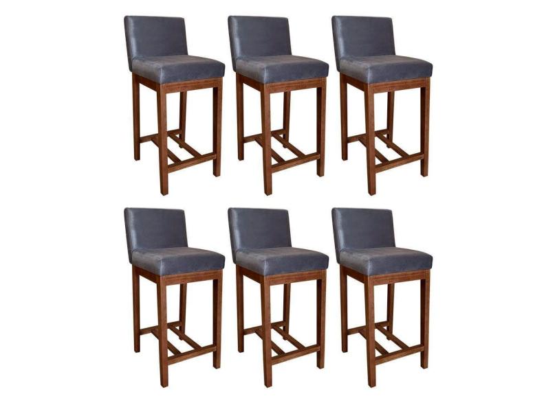 Kit 6 Banquetas Cinza Média Lisboa 90 Cm Madeira Maciça Maciça Suede CCS