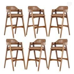 Kit 6 Banquetas com Braço Estofado Lua Madeira Imbuia Impermeável Cara