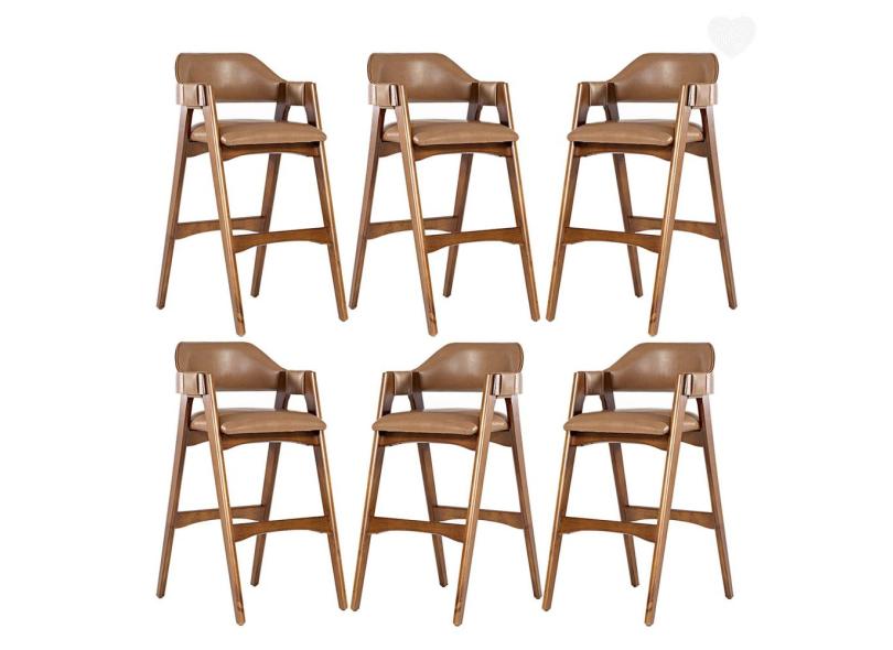 Kit 6 Banquetas com Braço Estofado Lua Madeira Imbuia Impermeável Caramelo L85 rmi