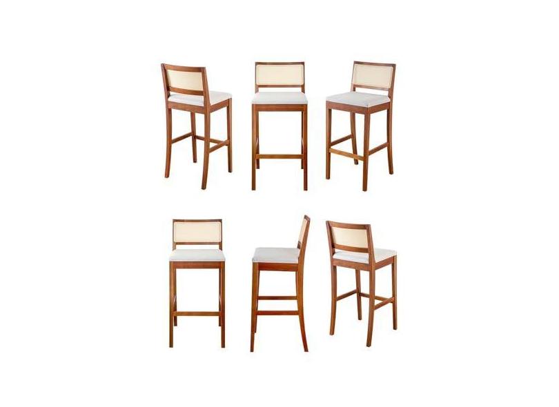 Kit 6 Banquetas com Encosto e Apoio para Pés Tiê Cabecasa Madeiramadeira Amêndoa/Off White