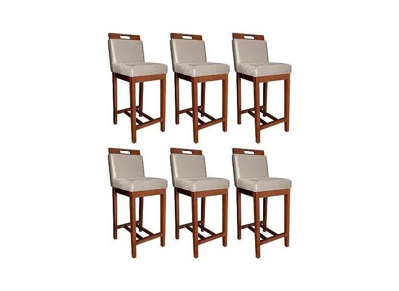Kit 6 Banquetas com Encosto Estofado Média Veneza 94 Cm Madeira Maciça Suede Bege CCS