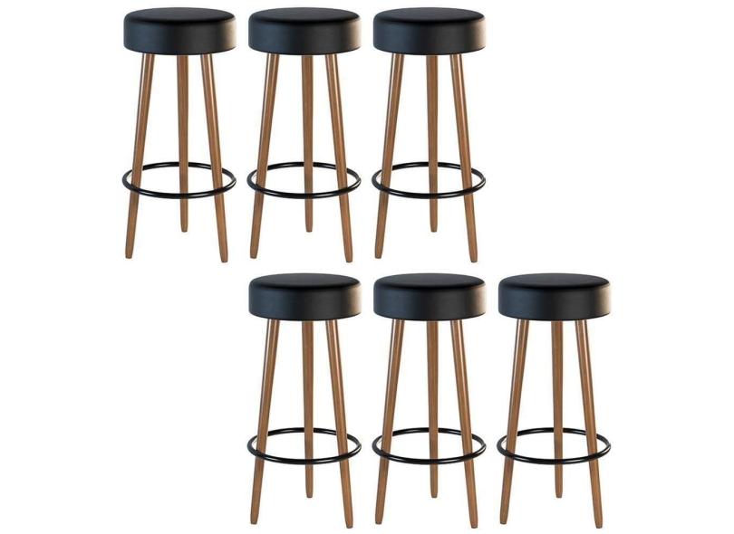 O menor preço encontrado no Brasil para Kit 6 Banquetas Estofada Com Pés De Madeira Couríssimo Preto atualmente é R$ 1.492,91.