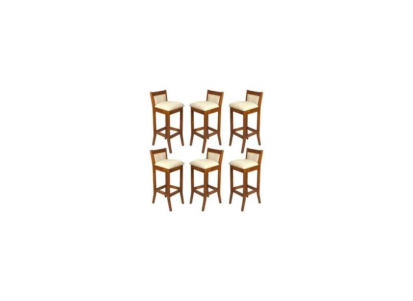 Kit 6 Banquetas Estofadas Alta Lucca 38 Cm Pés Madeira Maciça Imbuia Para Bancada Bar L62 - RMI
