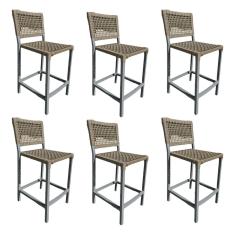 Kit 6 Banquetas França em Corda Náutica e Base em Alumínio Cinza para Área Gourmet Rami