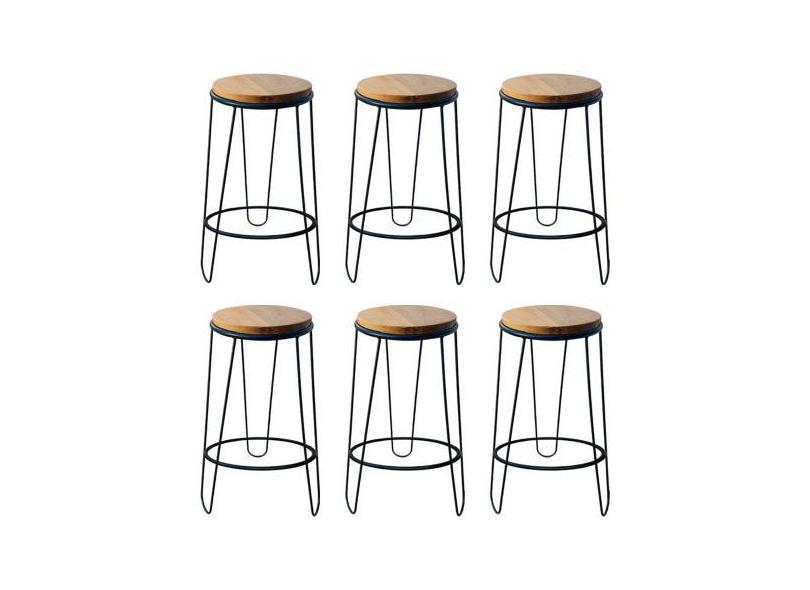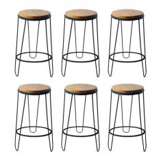 Kit 6 Banquetas Guatemala Industrial em Ferro e Madeira Maciça - MAHAR
