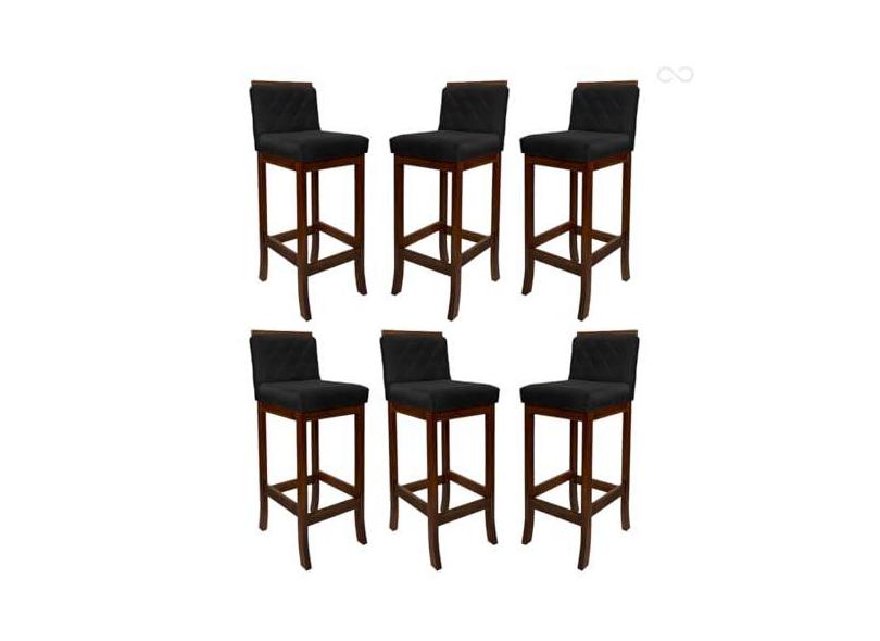 Kit 6 Banquetas Média em Madeira Castanho Nice Matelassê Suede Preto CCS