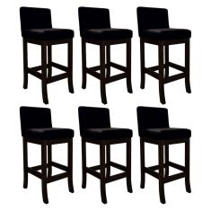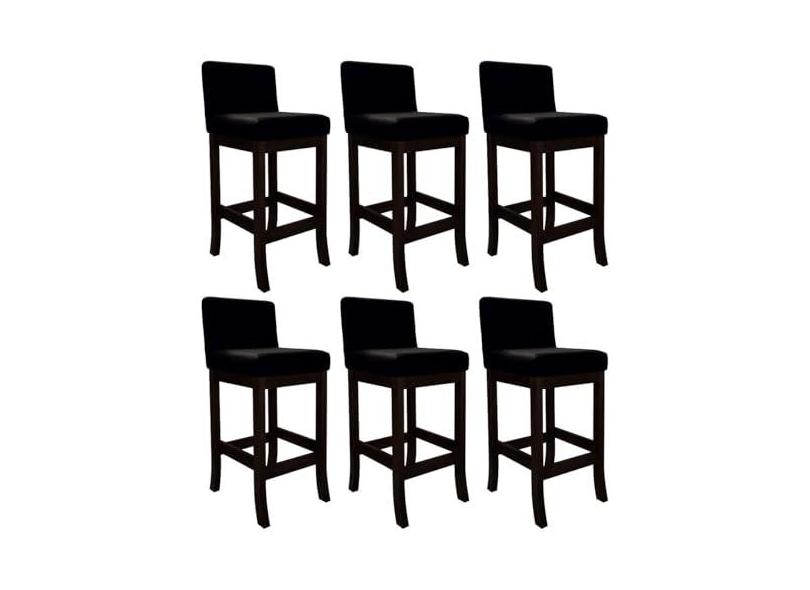 Kit 6 Banquetas Média em Madeira Estofada Capuccino Melody Suede Preto