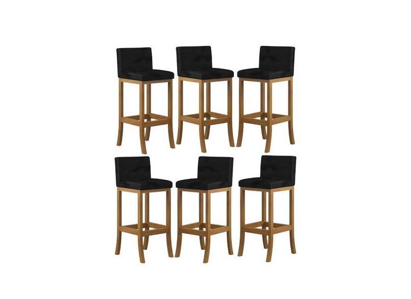 Kit 6 Banquetas Média Encosto Estofado 38x90Cm Ilha Espanha Madeira Ma