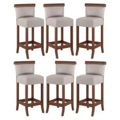 Kit 6 Banquetas Média Estofada Encosto Diamantina 36x90Cm Balcão Madei