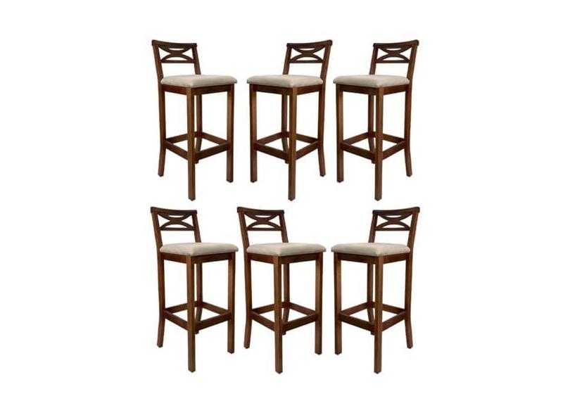 Kit 6 Banquetas Média Estofada para Bancada Madri Madeira Castanho Suede Bege CCS