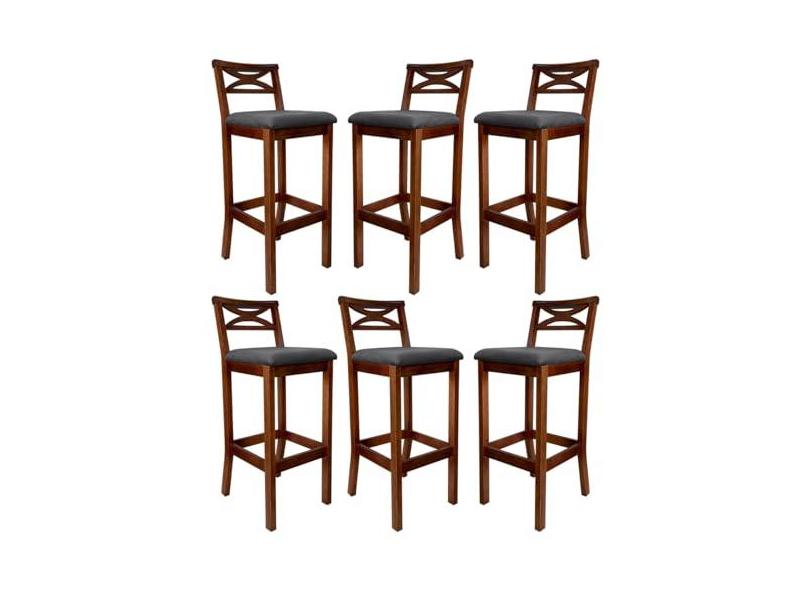 O menor preço encontrado no Brasil para Kit 6 Banquetas Média Estofada para Bancada Madri Madeira Castanho Suede Cinza CCS atualmente é R$ 2.364,08.