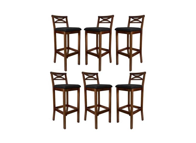 Kit 6 Banquetas Média Estofada para Bancada Madri Madeira Castanho Suede Preto CCS