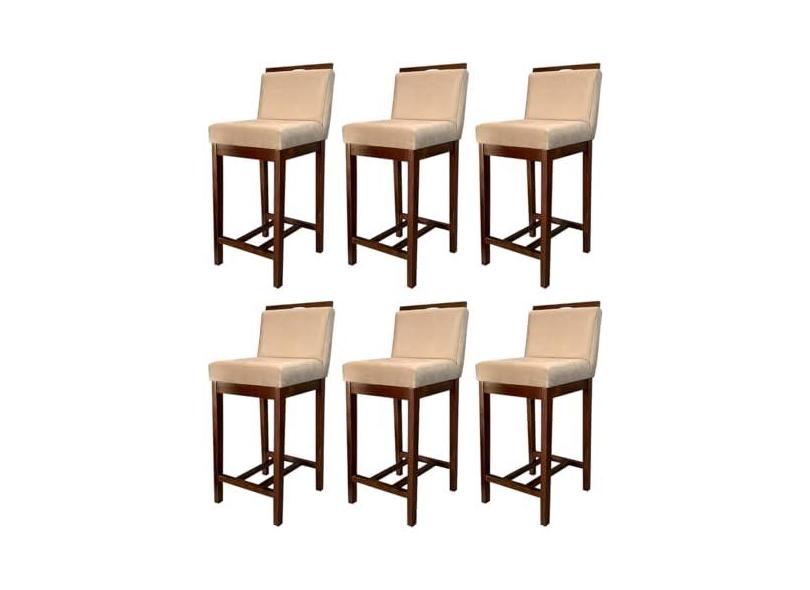 Kit 6 Banquetas Média Gourmet para Cozinha Líbia Madeira Capuccino Suede Bege CCS