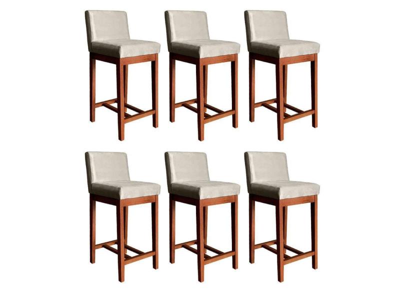 Kit 6 Banquetas Média Lisboa Moderna 90 Cm Madeira Maciça Suede Bege CCS
