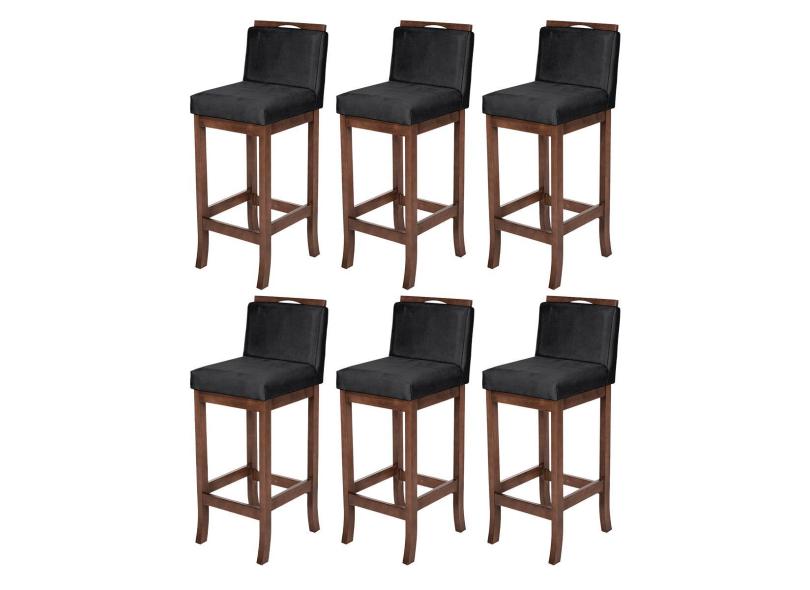 Kit 6 Banquetas Média para Cozinha Americana Turim Madeira Capuccino Suede Preto CCS
