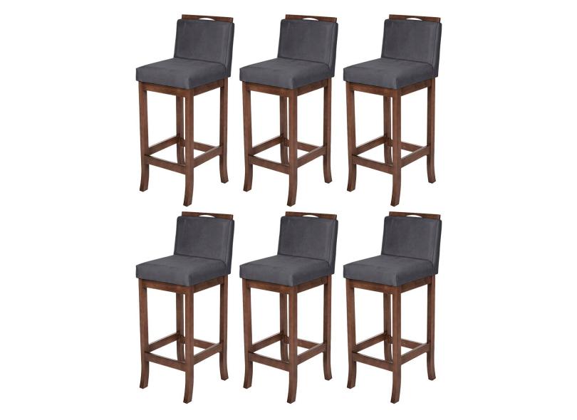 Kit 6 Banquetas Média para Cozinha Turim Madeira Capuccino Suede Cinza CCS