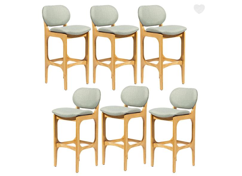 O menor preço encontrado no Brasil para Kit 6 Banquetas para Área Gourmet Decor Madeira Mel Linho Verde L84 RMI atualmente é R$ 6.164,89.