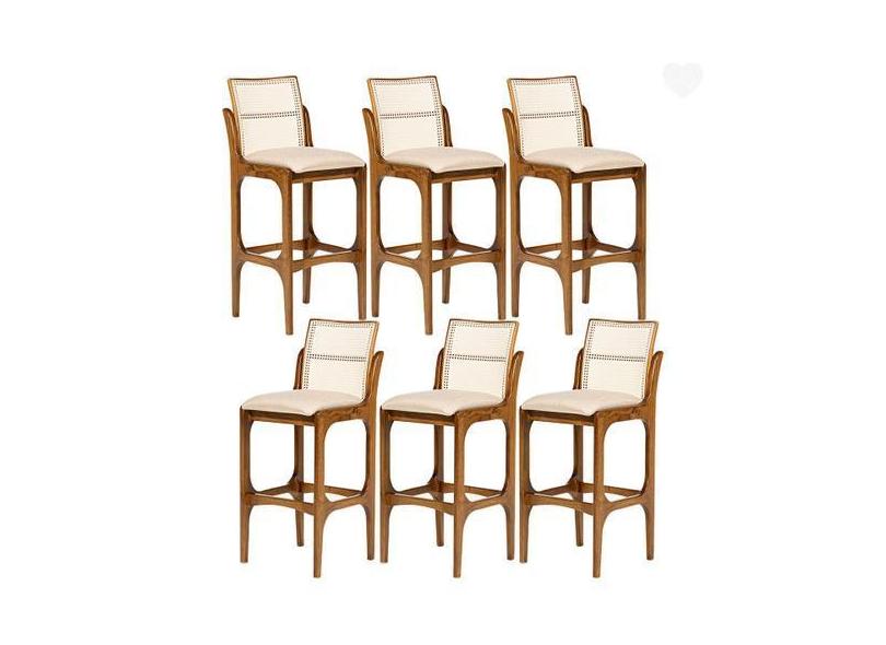 O menor preço encontrado no Brasil para Kit 6 Banquetas para Área Gourmet Lisboa Encosto Rattan Madeira Imbuia atualmente é R$ 5.895,47.