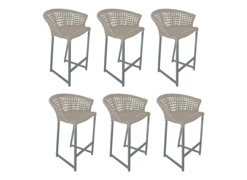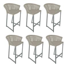 Kit 6 Banquetas Reis em Corda Náutica e Base em Alumínio Cinza para Área Gourmet - Externa Areia