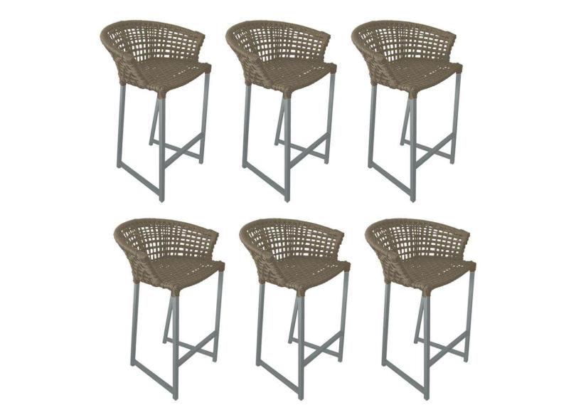 Kit 6 Banquetas Reis em Corda Náutica e Base em Alumínio Cinza para Área Gourmet - Externa Rami