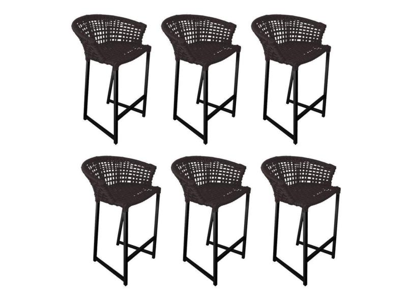 O menor preço encontrado no Brasil para Kit 6 Banquetas Reis Em Corda Náutica E Base Em Alumínio Preta Para área Gourmet Externa Marrom atualmente é R$ 4.077,35.