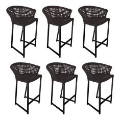 Kit 6 Banquetas Reis Em Corda Náutica E Base Em Alumínio Preta Para área Gourmet Externa Marrom