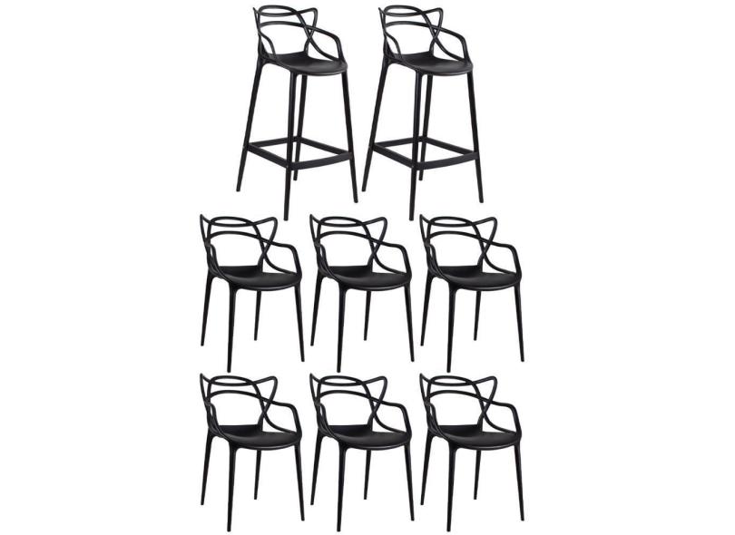 Kit 6 Cadeiras + 2 Banquetas Altas Masters Allegra Preto