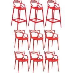 Kit 6 Cadeiras + 3 Banquetas Altas Masters Allegra Vermelho