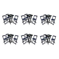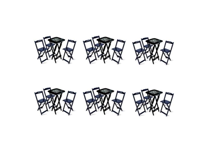 Kit 6 Conjuntos De Mesa Bistrô Dobrável Jack Daniel`s Com 3 Banquetas De Madeira Preta