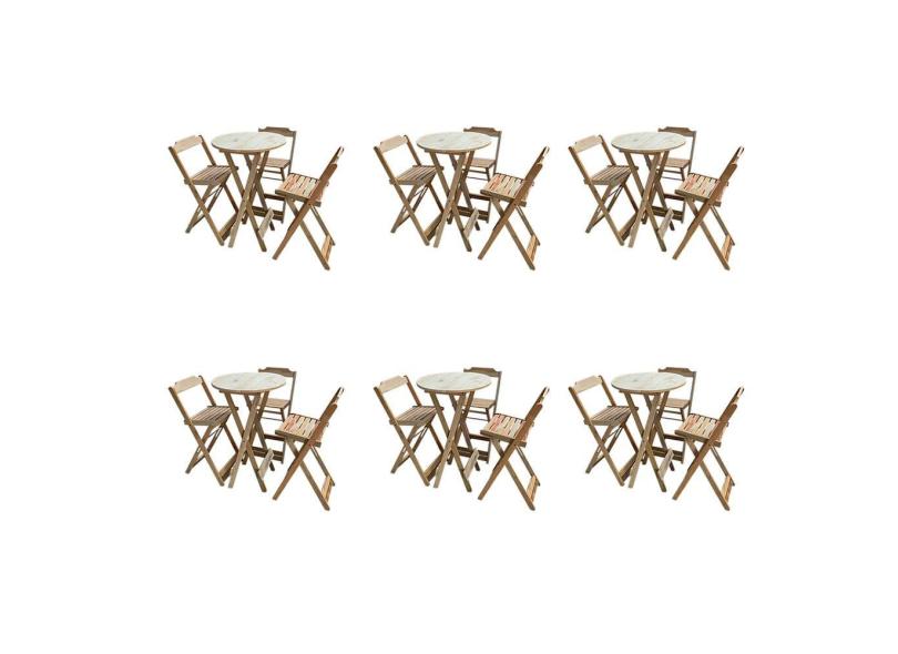 O menor preço encontrado no Brasil para Kit 6 Jogos de Mesas Bistrô de Madeira Dobrável com 3 Banquetas - Crua atualmente é R$ 2.471,38.