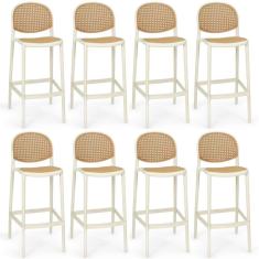 Kit 8 Banqueta Alta com Encosto Roma em Polipropileno - Nude