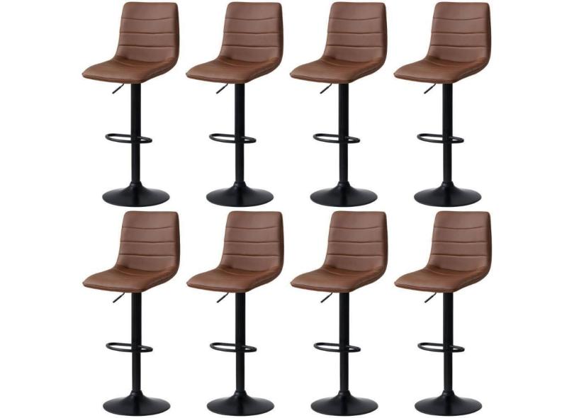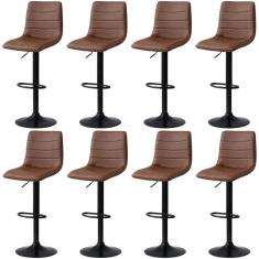 Kit 8 Banqueta Alta Estilo Estofada Com Base Giratória E Regulagem De Altura - Marrom