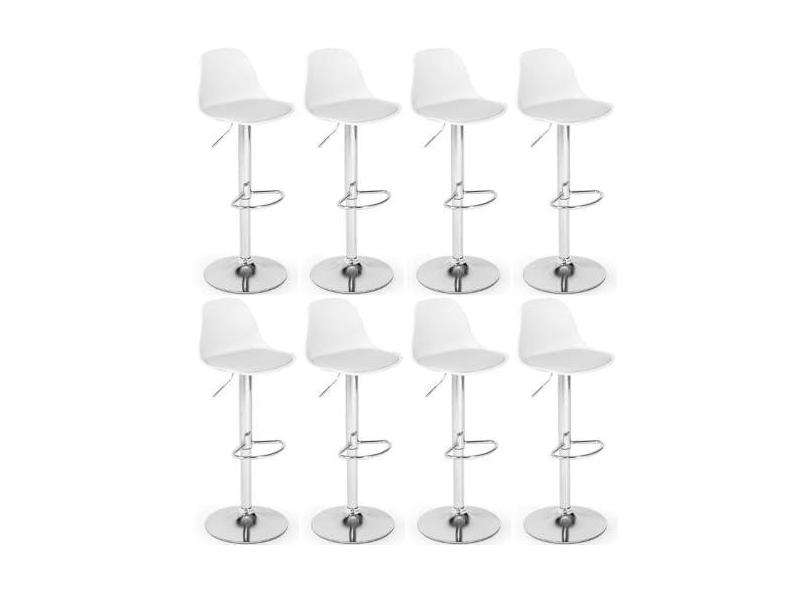 Kit 8 Banqueta Alta Leda Estofada com Base Giratória e Regulagem de Altura - Branco