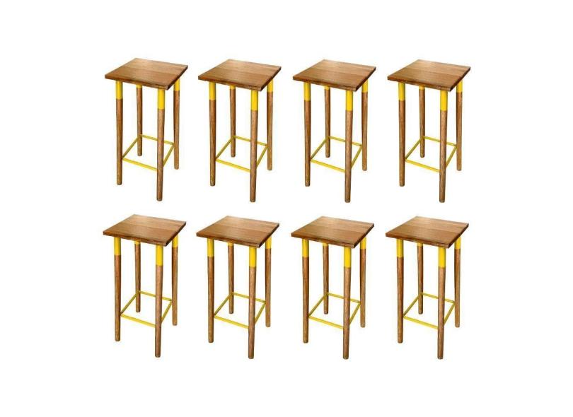 Kit 8 Banquetas Bistro Industrial Colors Ferro E Madeira Maciça - Amarela Amarelo