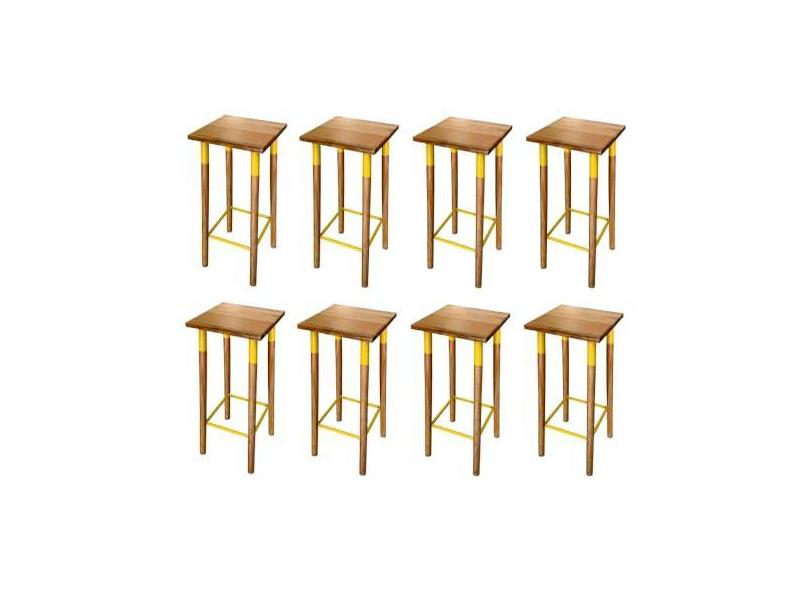 KIT 8 BANQUETAS BISTRO INDUSTRIAL COLORS FERRO E MADEIRA MACIÇA - AMARELA