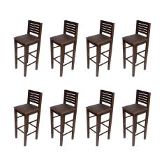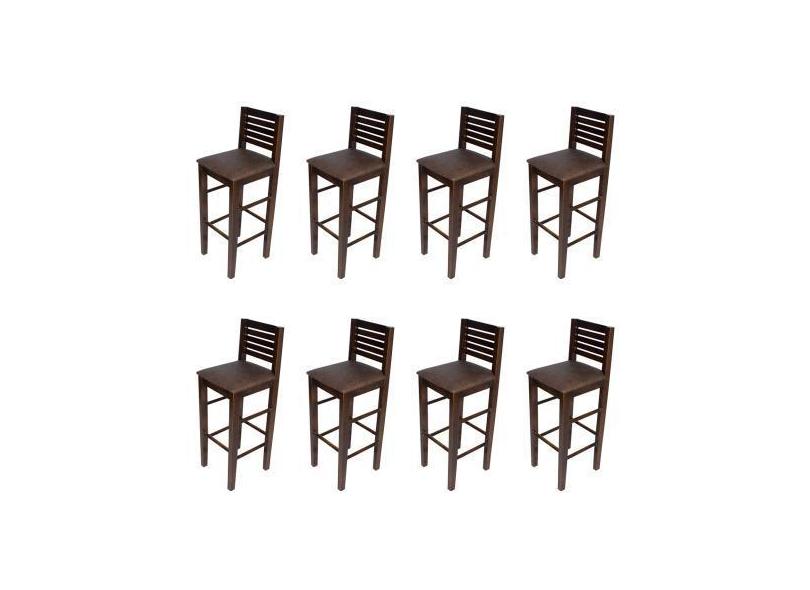 Kit 8 Banquetas Fixas Laguna em Madeira Maciça Imbuia Estofada Marrom