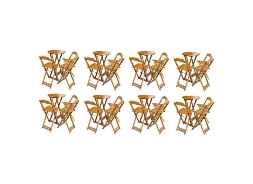 O menor preço encontrado no Brasil para Kit 8 Jogos de Mesa Bistrô de Madeira Dobrável com 3 Banquetas - Caramelo atualmente é R$ 3.682,05.