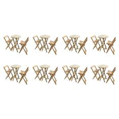 KIT 8 JOGOS DE MESAS BISTRÔ DE MADEIRA DOBRÁVEL COM 3 BANQUETAS - CRUA