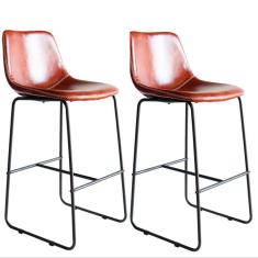 Kit com 2 Banquetas Oxford Assento em Couro Ecológico e Base Cromada Fratini