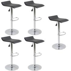 Kit com 5 Banquetas Alta Giratória com Altura Regulável Recouro Belo Horizonte Preto