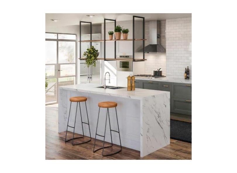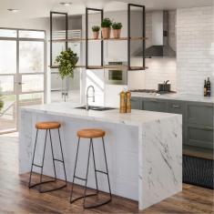 O menor preço encontrado no Brasil para Kit Cozinha Industrial Prateleira e 2 Banquetas Selena Madeira atualmente é R$ 920,45.