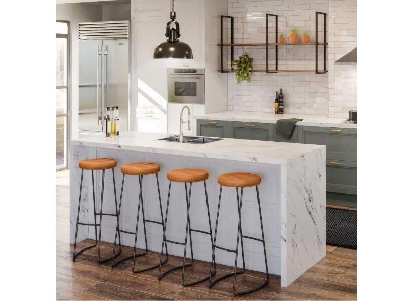 Kit Cozinha Industrial Prateleira E 4 Banquetas Madeira
