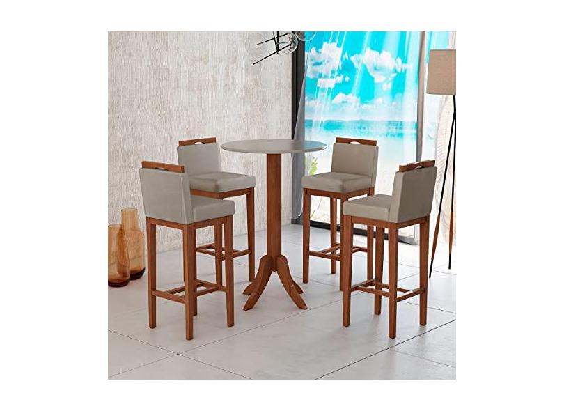 Kit Mesa Bar com 4 Banquetas Alta Estofadas Madeira Maciça Suede Bege CCS