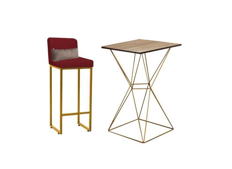 Kit Mesa Bistrô Lucca e 1 Banqueta Lucca Alta Com Encosto Tampo Carval