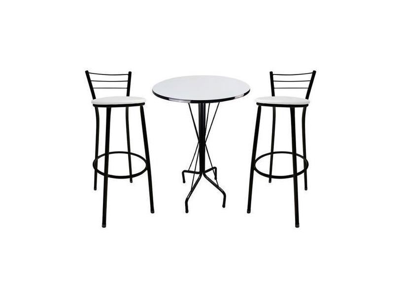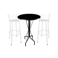 Kit Mesa Bistrô Preto Tampo Branco 2 Banquetas Preto Assento Branco -