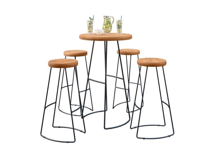 Kit Mesa Bistrô Redonda E 4 Banquetas Alta Astra Base Metálica - Pallazio